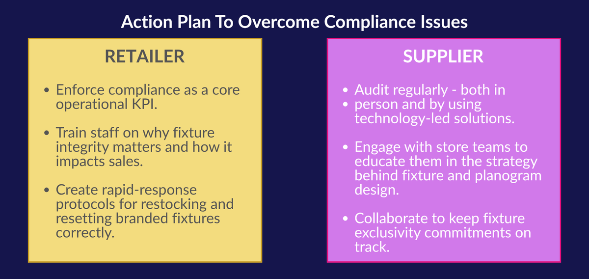 Stock management issues, staffing shortages and replenishment bottlenecks all contribute to compliance failures. It’s easy to see how a store team under pressure might fill an empty space on a branded display with another brand’s product “just for now.”